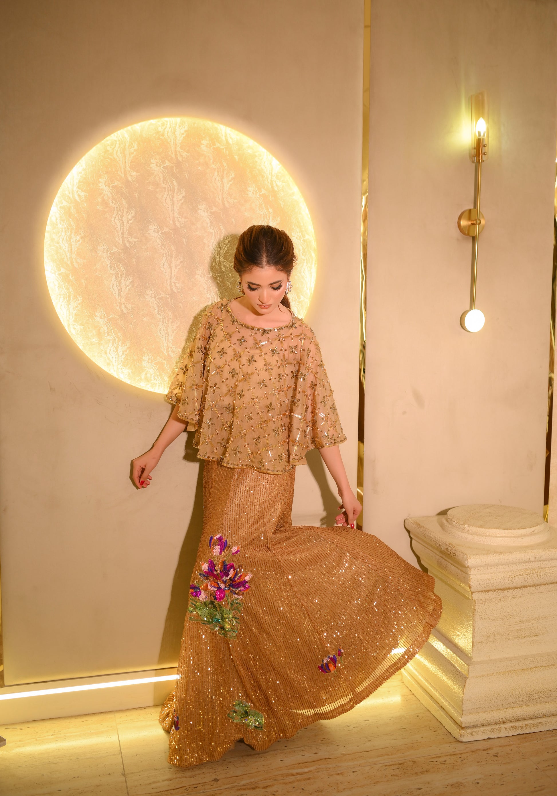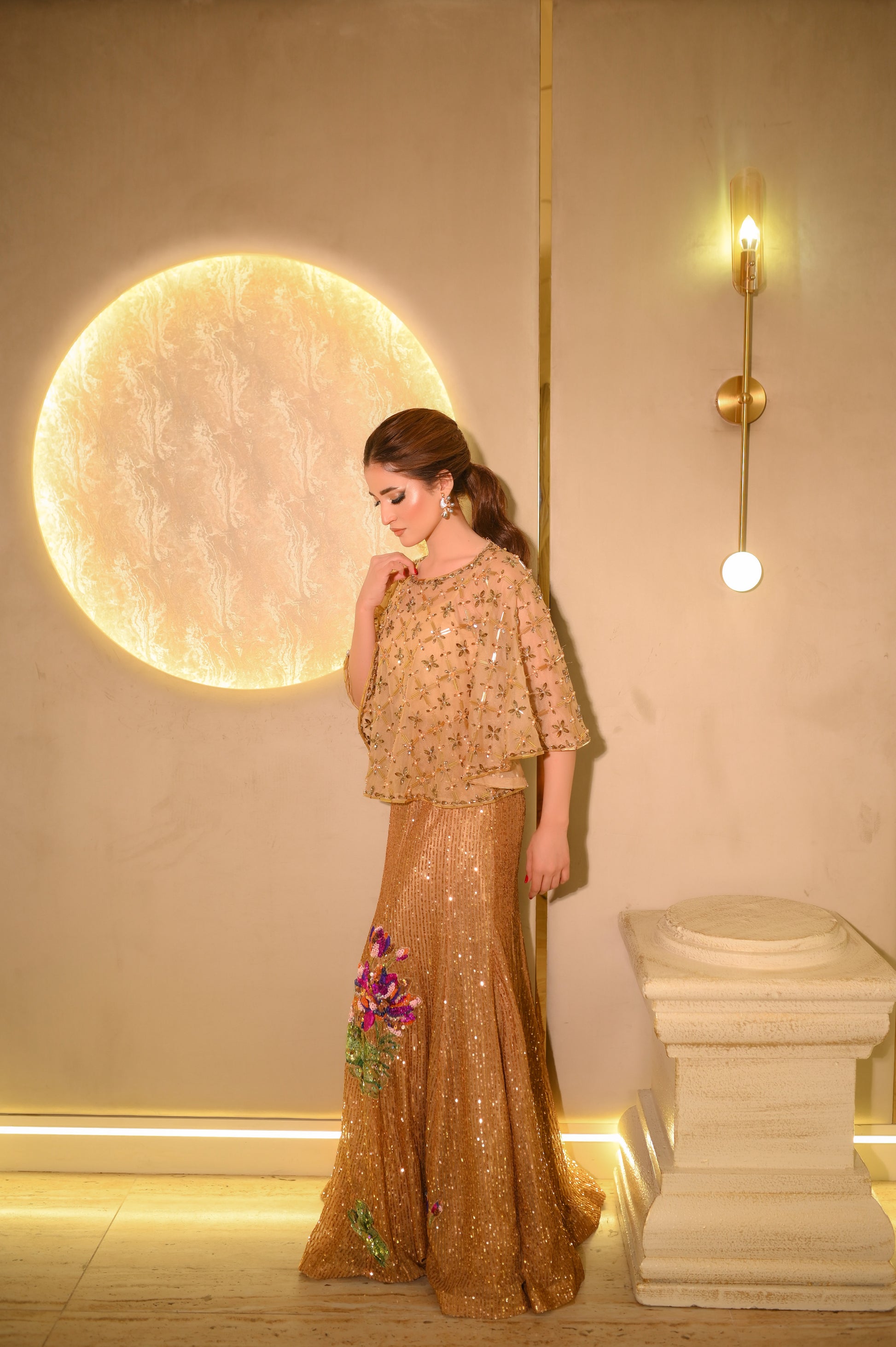 Outfit Include :3-pc (Cape+ Inner Blouse + Lehnga)