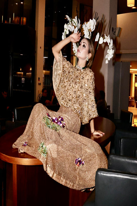 TAUPE CRUSHED SILK SHARARA | FESTAL| RJ’S PRET